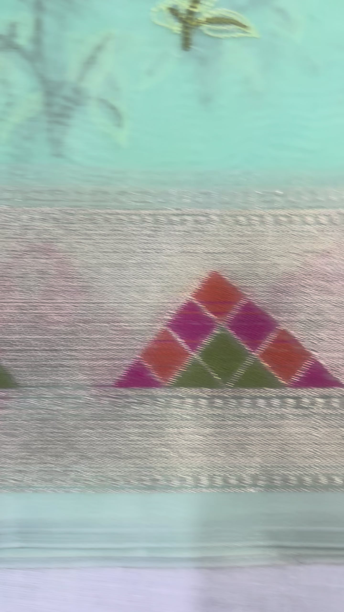 Banarasi Light Green Kora with Rose Chikankari Embroidery Work - Designer Party Wear