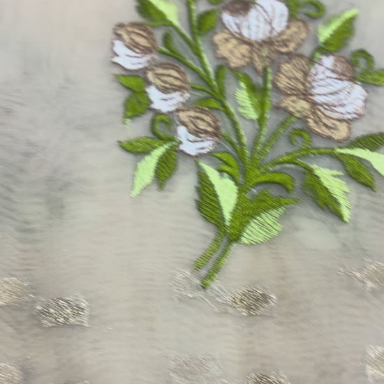 Banarasi Beige Kora with Rose Chikankari Embroidery Work - Designer Party Wear