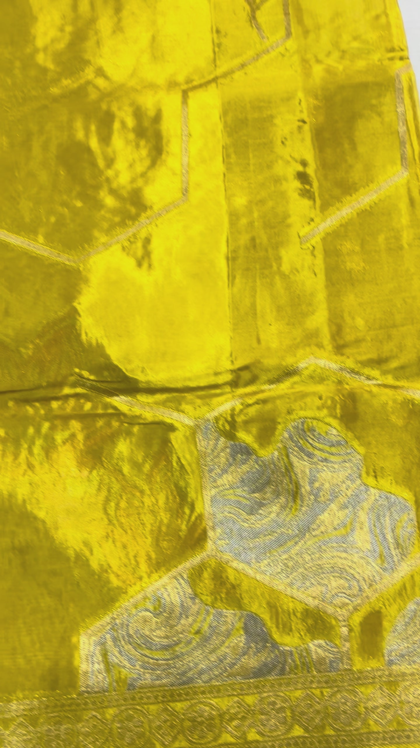 Metallic Green Banarasi Pure Mashru Silk with Sonarupa Geometrical Pattern- Designer Party Wear