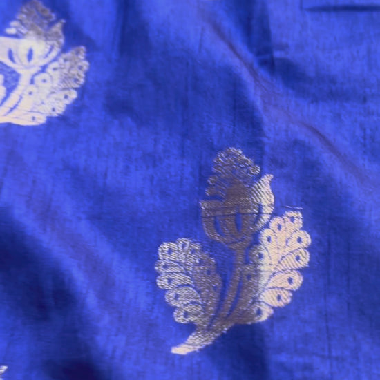 Royal Blue Banarasi Dola Silk with Silver Flower Patterned Weaving -Traditional Wear