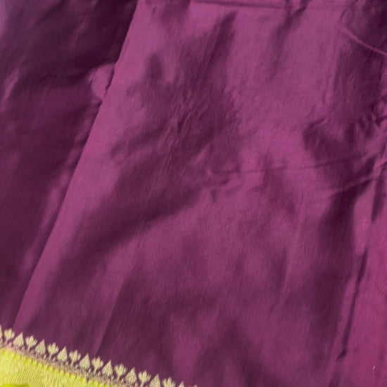 The Wine Banarasi Mashru Silk Saree is a radiant masterpiece of traditional weaving. Featuring plain body, with Geometrical shaped zari Pallu & borders exudes richness and grandeur.