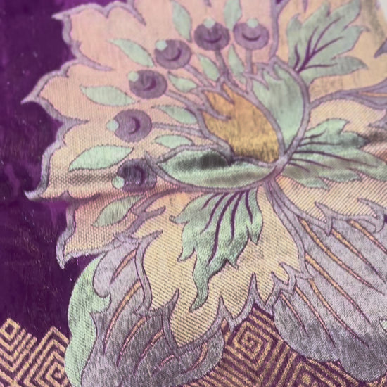 Purple Banarasi Pure Mashru Silk with Gold & Silver Big Floral Pattern- Designer Party Wear
