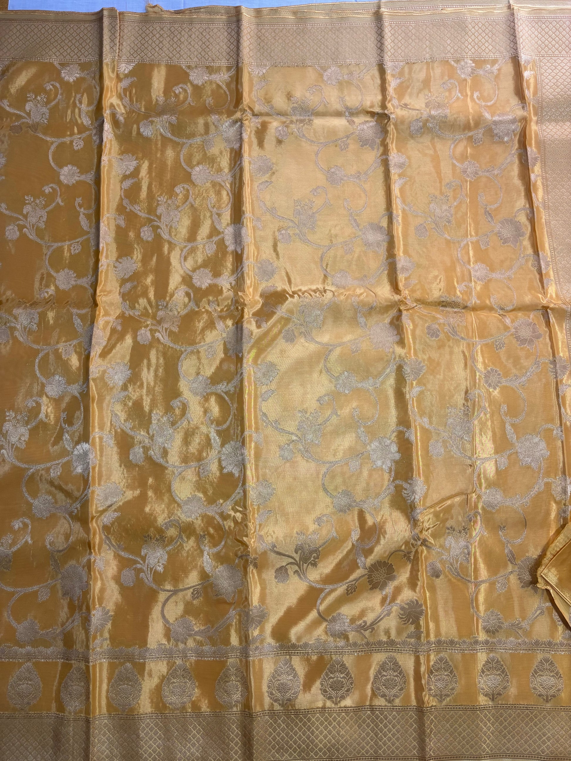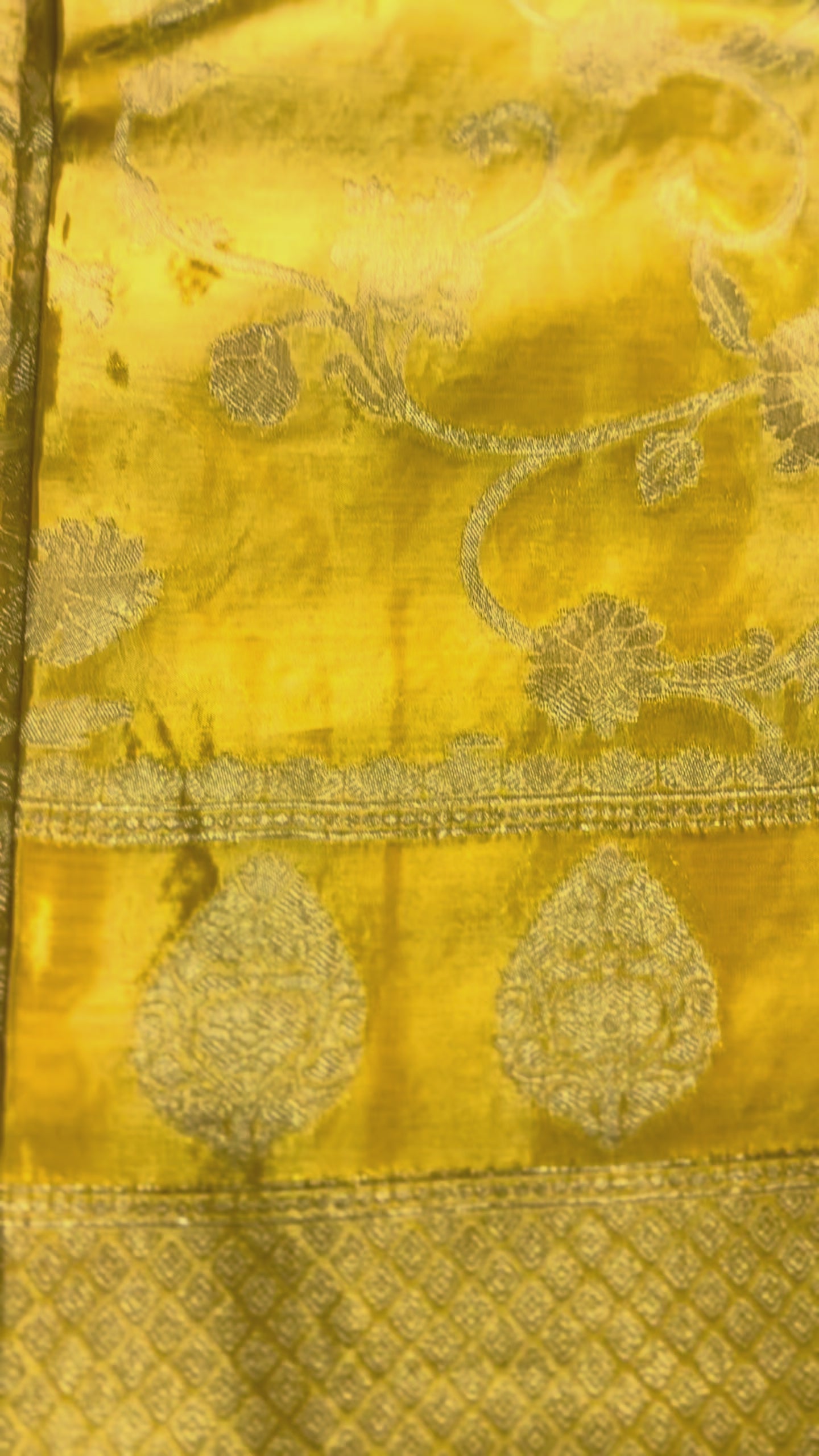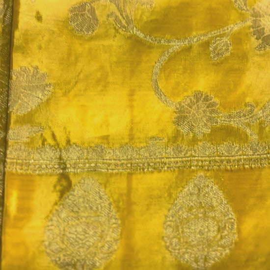 Mango Yellow Banarasi Russian Silk Saree with Silver Jaal Design - Designer Party Wear
