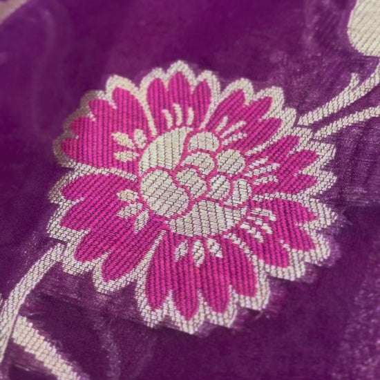 Maroon Banarasi Katan Georgette Saree with Multicolour Flower Meenakari Pattern - Traditional Wear