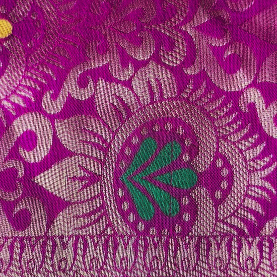 Bring a touch of luminous elegance to your wardrobe with this Premium Raw Silk Saree, a graceful blend of texture and tradition. Woven in a radiant magenta base, the saree features delicate intricate multicolour bandini weaving patterns across the body that add a subtle shimmer. Its border is enriched with zari motifs of foliage patterns, lending a refined yet festive appeal. With its natural raw silk sheen and easy drape, this saree is a perfect choice for weddings, cultural occasions, and celebrations.
