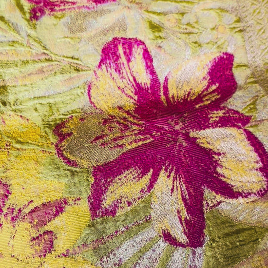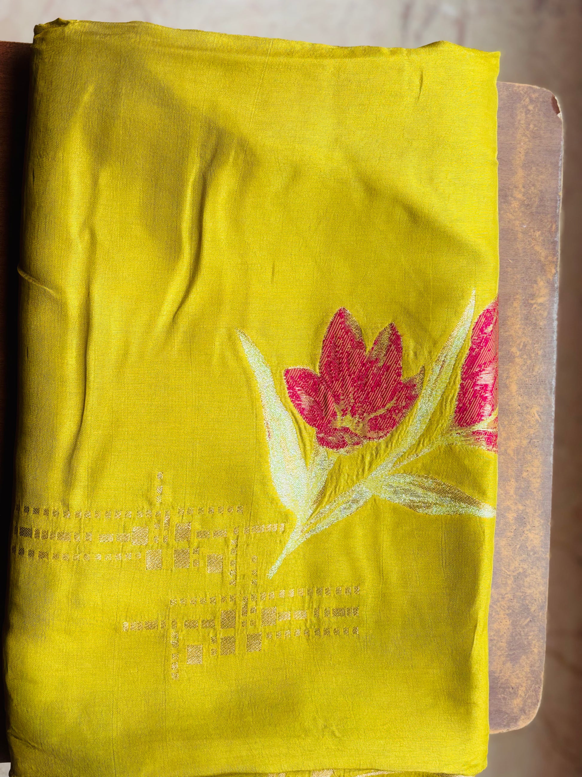 Lime Green Banarasi Pure Mashru Silk Saree with Floral Pattern - Designer Party Wear