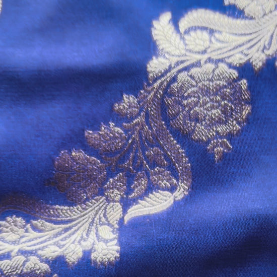 Navy Blue Banarasi Semi Mashru Silk Saree with Meenakari Lehariya Weaving - Elegant traditional wear