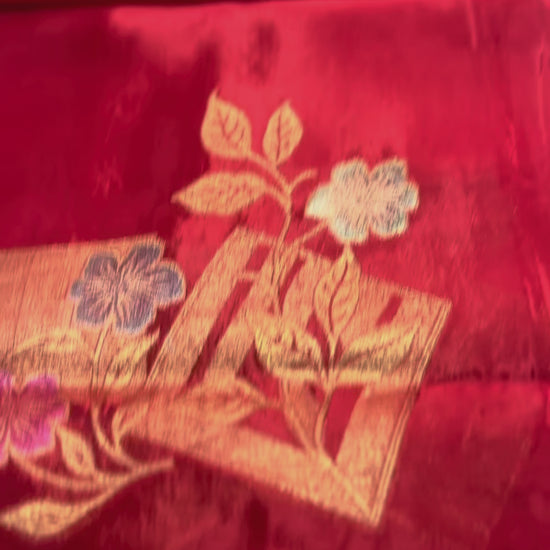 Red Luxurious Banarasi Pure Mashru Silk with geometrical Flower Motifs - Designer Party Wear