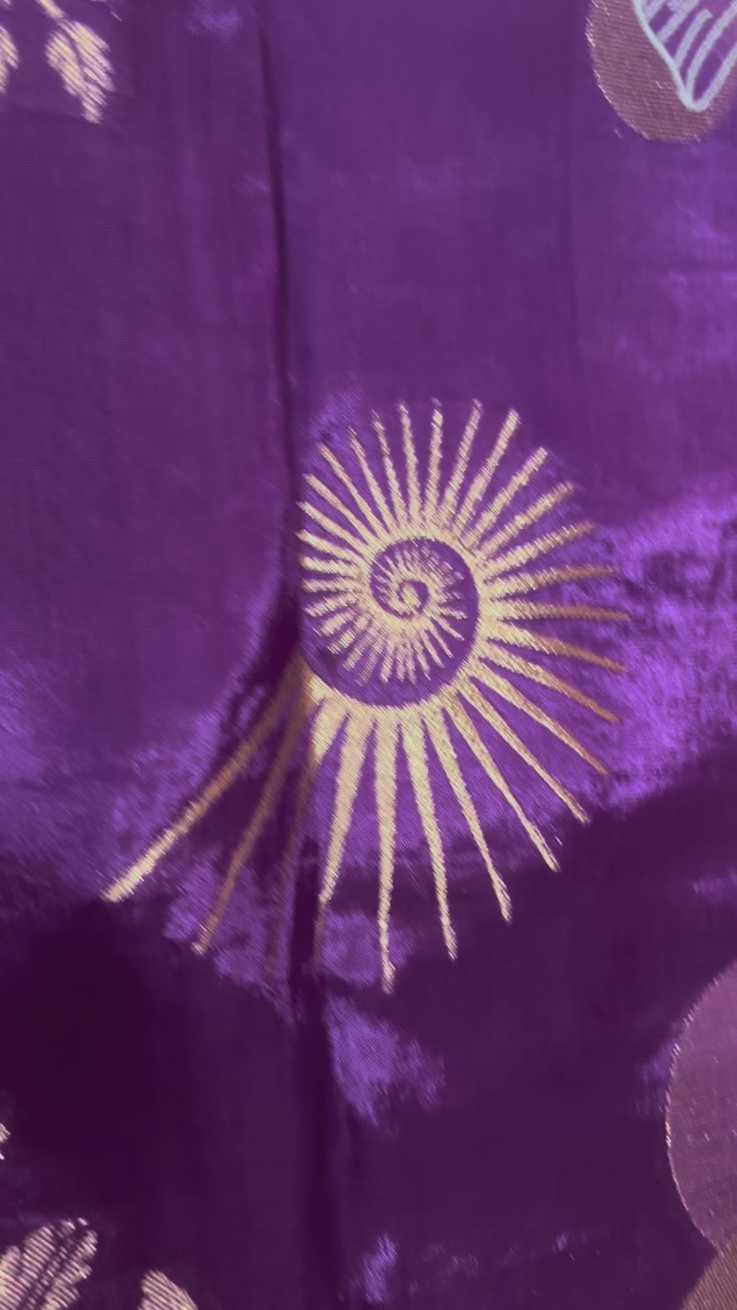 Purple Banarasi Pure Mashru Silk with Designer Sona Rupa Floral Motifs- Designer Party Wear
