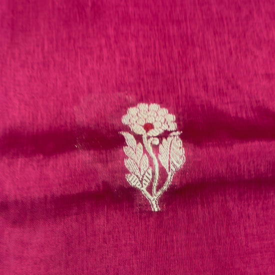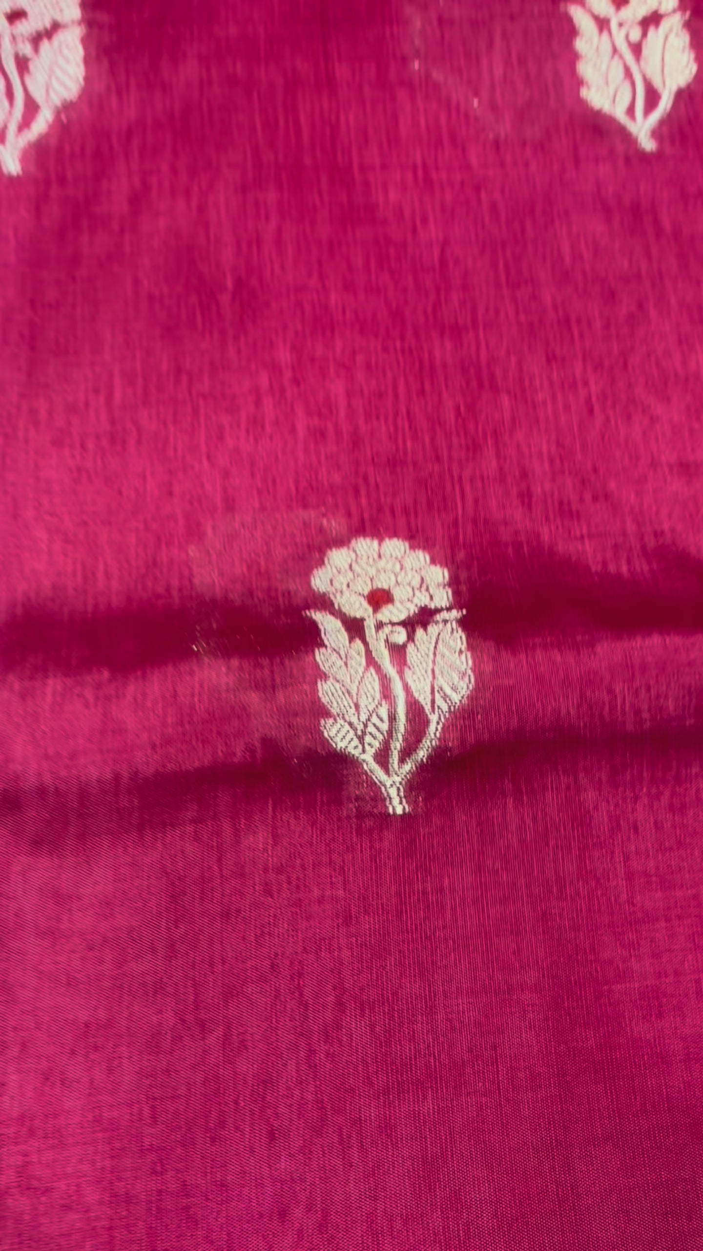 Grace your wardrobe with this Pure Red Banarasi Chiniya Silk Saree, beautifully detailed with small silver floral buta woven all over the body. Along with traditional contrast double border with floral & Zari weaving with plain pallu and blouse. The lustrous silk fabric enhances its rich texture, while the intricate motifs reflect traditional artistry.