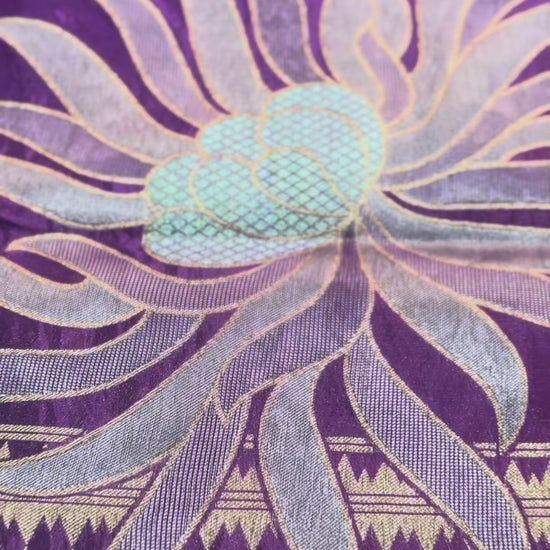 Purple Banarasi Pure Mashru Silk with Gold Sun-like pattern - Designer Party Wear
