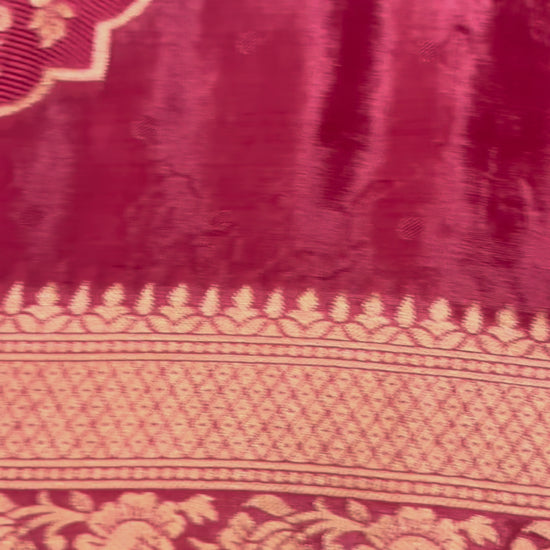 Onion Pink Banarasi Pure Mashru Silk with Tanchui Weaving & Floral pattern - Designer Ethnic Wear