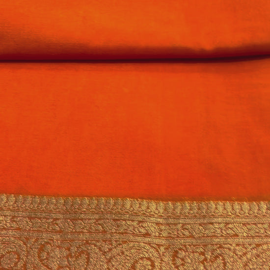 Orange Banarasi Crape Silk Saree with Gold Zari Border - Traditional Wear