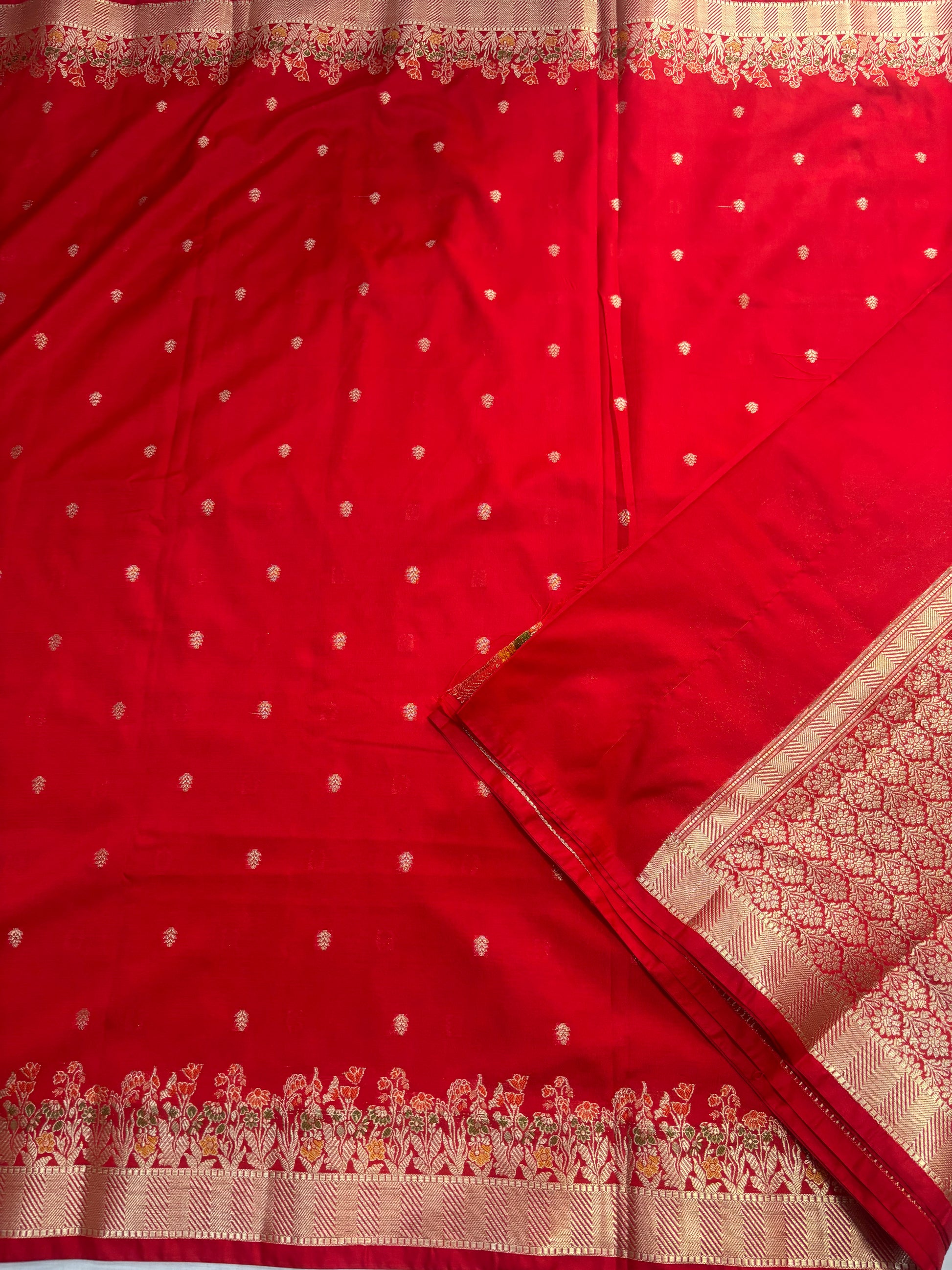 Red Banarasi Katan Silk Saree with Tilfi Meenakari Border - Designer Traditional wear