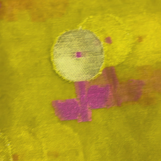Mustard Yellow Banarasi Kora Organza Silk with Gold & Pink Meena Butta Saree - Designer Party Wear
