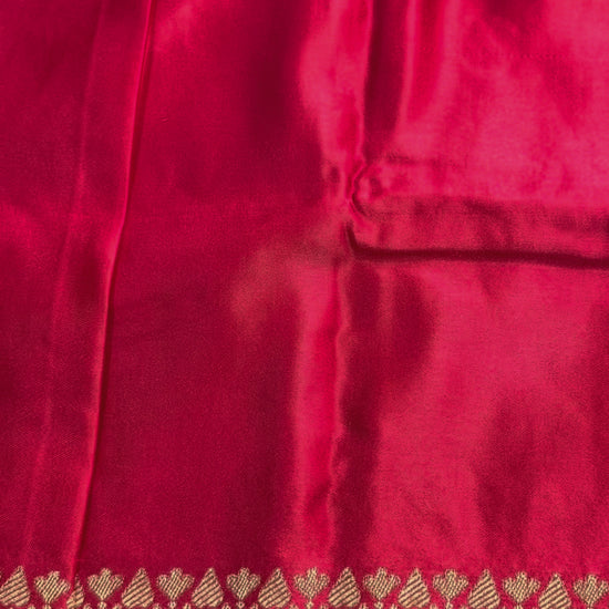 The Red Banarasi Mashru Silk Saree is a radiant masterpiece of traditional weaving. Featuring gold floral patterns across the body along with traditional Banarasi rich pallu & gold zari borders in rani pink exudes richness and grandeur.